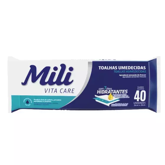 As toalhas umedecidas uso adulto Vita Mili foram desenvolvidas para uma higiene mais completa e eficiente. Podem ser utilizadas em todo o corpo, proporcionando praticidade e conforto. Sua fórmula é testada dermatologicamente e sua composição contém macadâmia, oliva, girassol, linhaça, abacate, argan, coco e ômega 3, 6, 7 e 9, que nutrem, protegem e garantem hidratação à pele, além de oferecer agradável sensação de frescor.